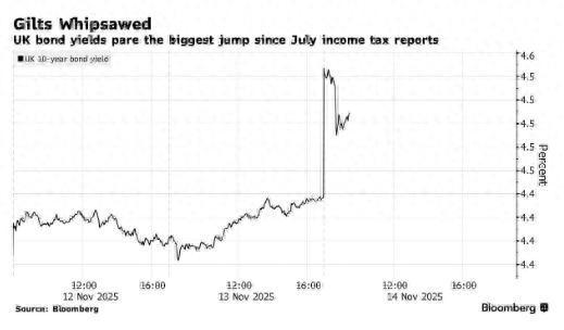 在传出财政大臣蕾切尔・里夫斯毁灭提高所得税规划的音讯后,英国国债收益率周五一度创下自7月以来最大涨幅,英镑与富时100指数应声下挫。但随后报谈称政策鼎新源于英国预算监督机构给出了更为乐不雅的财政预测,阛阓波动幅度随之收窄。