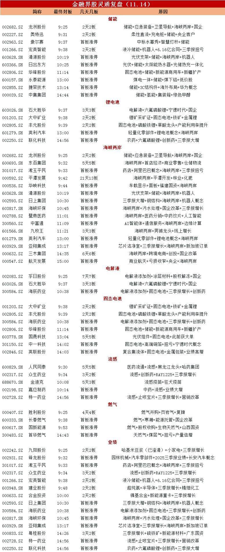 储能想法强势,龙洲股份等多股涨停。海峡两岸想法捏续走强,平潭发展、海峡环保等涨停。燃气板块活跃,首华燃气等涨停。流感想法股反回生跃,金迪克等涨停。